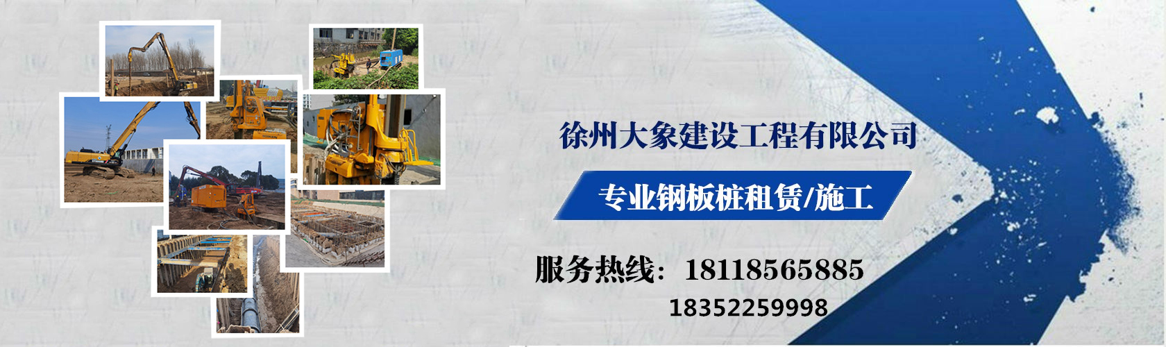 徐州大象建設(shè)工程有限公司是一家專業(yè)從事拉森鋼板樁施工及租賃、打樁機(jī)施工及租賃、靜壓植樁機(jī)施工租賃及設(shè)計(jì)施工方案、二手鋼板樁轉(zhuǎn)讓、鋼板樁工程、光伏樁施工、市政工程、水利圍堰工程、土石方工程、地基工程施工等服務(wù)為一體的企業(yè)。